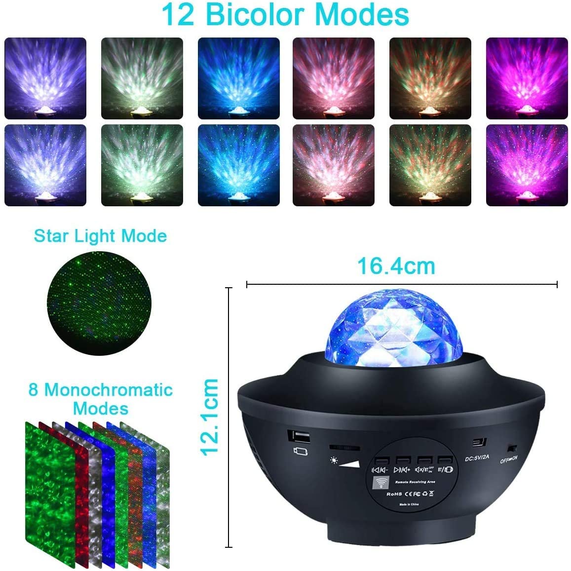 ✔️【Ocean luz nocturna projector】El proyector luminoso "Ocean Luz Nocturna" proyecta imágenes de luz del océano y estrellas, y cuenta con varios modos de iluminación y combinaciones de colores